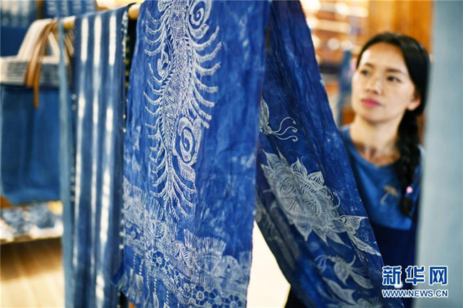 2018年,楊成蘭在村里成立傳統(tǒng)織染合作社,吸引村里及周邊村寨貧困戶入股,帶動(dòng)當(dāng)?shù)刎毨艉痛迕窦尤牒献魃?,從事織布、染布、藍(lán)靛種植等產(chǎn)業(yè),在傳承民族傳統(tǒng)手工技藝的同時(shí),幫助村民脫貧增收。