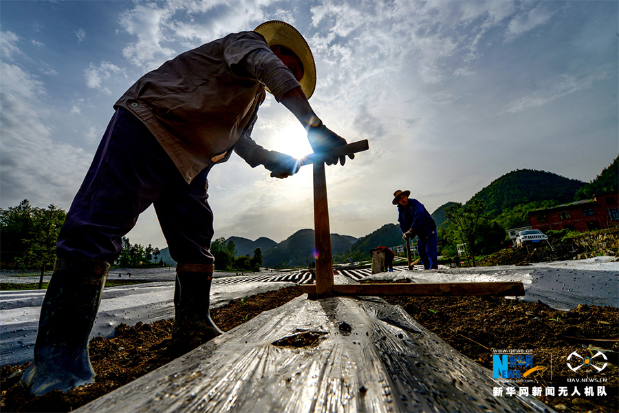 奉節(jié)縣興隆鎮(zhèn)廟灣鄉(xiāng)村的村民正忙著移栽烤煙幼苗。新華網(wǎng)發(fā)(何川 攝)