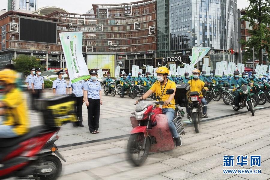 送完這一單后,周歡匆匆趕往下一個送餐點(diǎn)。“未來,將有更有人在點(diǎn)外賣時,不僅會收到美食,還會收獲一份特殊的‘禁毒外賣’”。新華網(wǎng)發(fā) (滕華 攝)