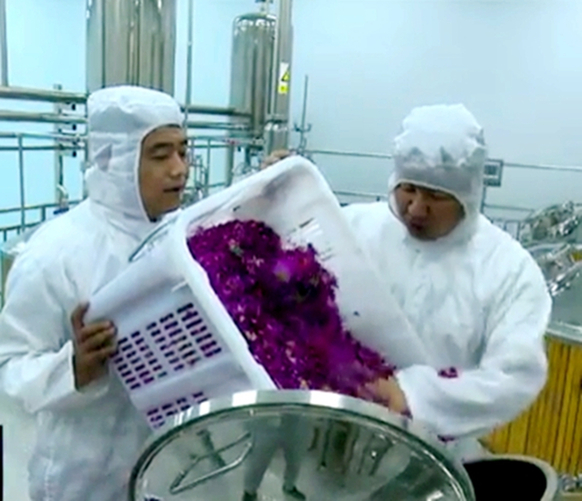永登縣大手印玫瑰生產(chǎn)加工有限公司在工藝升級后,產(chǎn)能隨之?dāng)U大,收購的鮮花量達到800噸,能夠幫助苦水鎮(zhèn)新屯川村和上新溝村3000戶花農(nóng)增收致富。目前,永登縣玫瑰種植面積達10.16萬畝,帶動建檔立卡貧困戶3000多戶,玫瑰產(chǎn)業(yè)成了當(dāng)?shù)孛撠毐夹】档闹еa(chǎn)業(yè)。