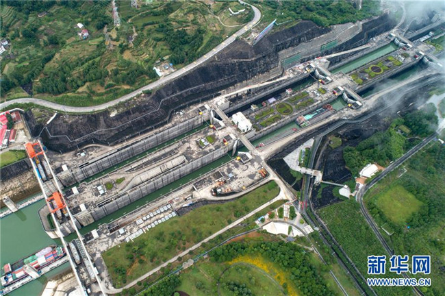 6月17日,船舶有序通過三峽五級船閘。新華社發(fā)(鄭家裕 攝)