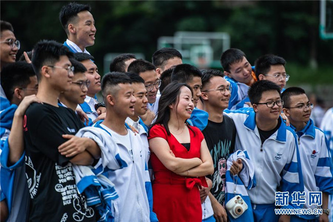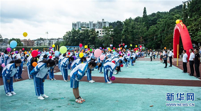 6月27日,烏當中學高三學生向老師鞠躬表達感謝。新華社記者 陶亮 攝