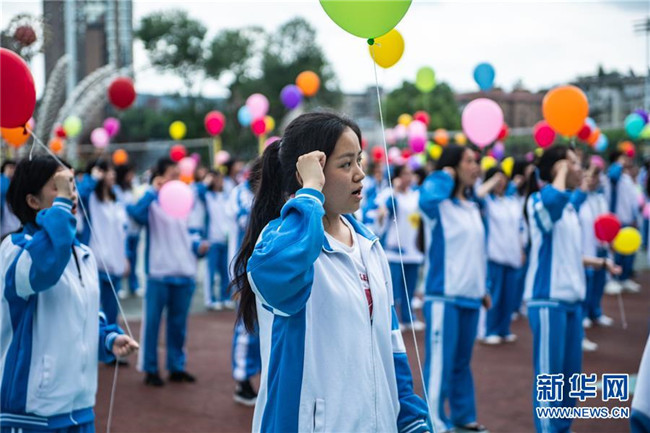 6月27日,烏當中學高三學生在畢業(yè)典禮上宣誓。新華社記者 陶亮 攝