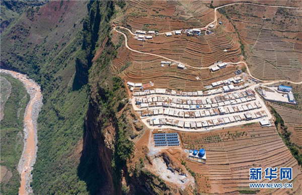 這是西溪河峽谷邊的四川省金陽縣老寨子村集中安置點(diǎn)(6月4日攝,無人機(jī)照片)。