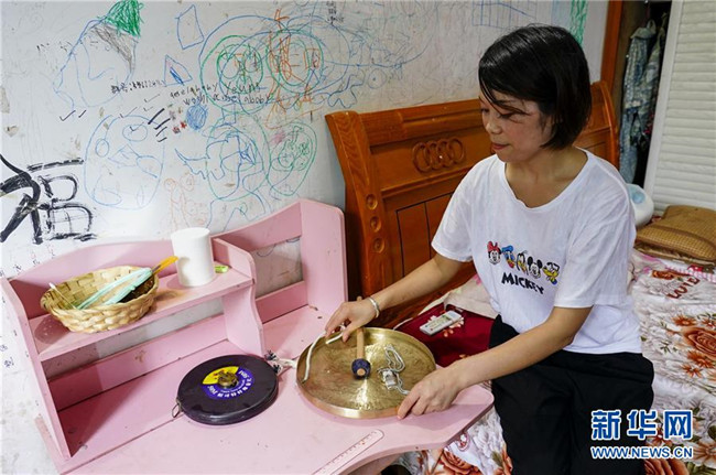 7月1日,一次巡查監(jiān)測結(jié)束后,侯芳將鑼、哨和卷尺按照自己的習(xí)慣整齊地放置在床頭的柜子上。 新華社記者 劉潺 攝
