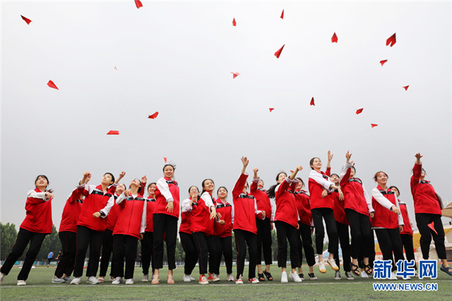 2020年7月3日,河南省溫縣一中高三學(xué)生在學(xué)校操場(chǎng)上做減壓游戲。 2020年全國(guó)高考即將拉開(kāi)帷幕,同學(xué)們從容應(yīng)對(duì),以良好的狀態(tài)迎接高考的到來(lái)。 新華社發(fā)(徐宏星 攝)