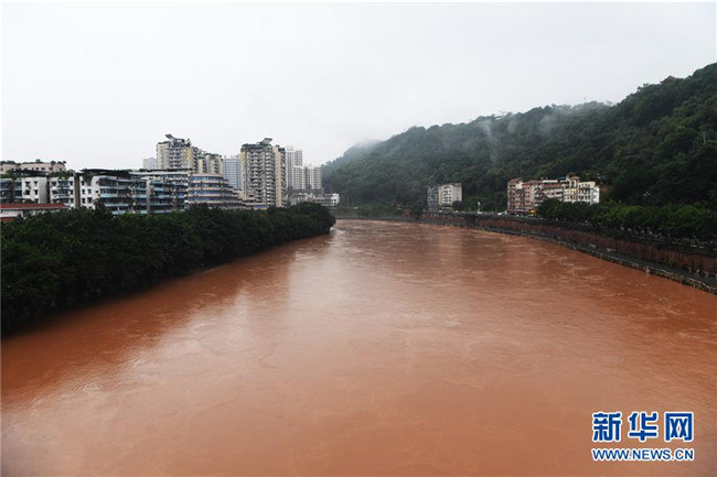 7月7日,洪水穿過(guò)綦江城區(qū)。新華社記者 王全超 攝