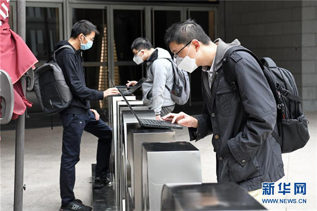 在深圳平安金融中心,企業(yè)員工在樓下使用筆記本電腦連接公司內網下載安裝遠程辦公軟件,以便實現(xiàn)居家“云辦公”(2月10日攝)。新華社記者 梁旭 攝