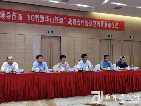 西部決策網(wǎng)訊 7月16日下午,“5G智慧華山旅游”戰(zhàn)略合作協(xié)議簽約暨發(fā)布儀式在華山諾富特酒店舉行。渭南市人民政府副市長(zhǎng)高潔,中國聯(lián)通陜西省分公司副總經(jīng)理李武,中共華陰市委書記、華山風(fēng)景名勝區(qū)管理委員會(huì)黨工委書記朱忠效,渭南市文化和旅游局局長(zhǎng)常偉,華山風(fēng)景名勝區(qū)管理委員會(huì)黨工委副書記、常務(wù)副主任趙曉龍,陜西華山旅游集團(tuán)有限公司黨委書記、董事長(zhǎng)張泉,渭南市委網(wǎng)信辦副主任郭茂盛見證簽約并共同啟動(dòng)“5G智慧華山旅游”。華旅集團(tuán)總經(jīng)理高江宏與中國聯(lián)通渭南分公司總經(jīng)理李亞軍代表雙方簽約。集團(tuán)副總經(jīng)理趙江鋒與中國聯(lián)通陜西分公司副總經(jīng)理李武分別致辭。