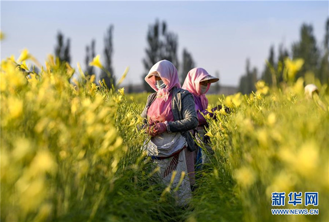 7月16日,農(nóng)民在寧夏鹽池縣惠安堡鎮(zhèn)大壩村采摘黃花菜。 新華社記者 馮開華 攝