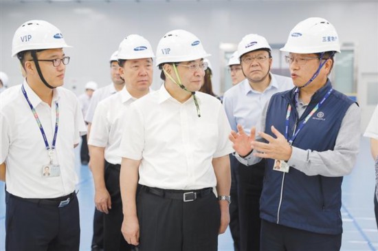 7月21日,省委書記胡和平到部分外資企業(yè)調(diào)研并召開座談會。圖為他在三星(中國)半導(dǎo)體公司閃存芯片二期項目現(xiàn)場聽取項目規(guī)劃介紹。 本報記者 張辰攝