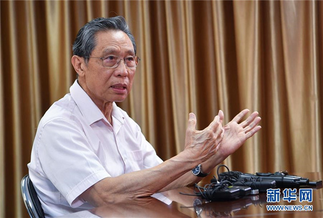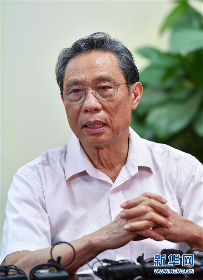 7月29日,中國工程院院士、國家呼吸系統(tǒng)疾病臨床醫(yī)學(xué)研究中心主任、廣州醫(yī)科大學(xué)呼吸內(nèi)科教授鐘南山在廣州醫(yī)科大學(xué)附屬第一醫(yī)院接受新華社采訪,談對香港疫情形勢的判斷,以及對防控疫情的建議。 新華社記者 劉大偉 攝