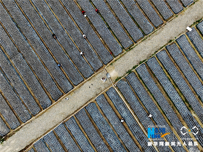 甘肅省宕昌縣好梯鄉(xiāng)地處林緣地帶,氣候溫暖潮濕,非常適宜菌類生長(zhǎng)。在好梯鄉(xiāng)麻子溝扶貧產(chǎn)業(yè)園中黑木耳長(zhǎng)勢(shì)喜人,一排排整齊排列的菌棒構(gòu)成一幅美麗畫卷。目前,第一批耕地種植黑木耳6萬(wàn)袋,年產(chǎn)黑木耳3噸,第二批擬在今年9月份新建鋼架大棚24個(gè),吊袋種植黑木耳21萬(wàn)袋,年產(chǎn)黑木耳10.5萬(wàn)噸。新華網(wǎng)發(fā)(劉輝 攝)