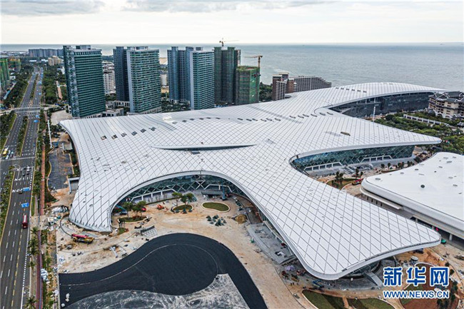 這是8月25日拍攝的位于??诘暮D蠂H會展中心二期項(xiàng)目(無人機(jī)拍攝)。新華社記者 蒲曉旭 攝
