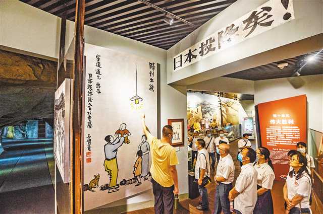 9月3日,九龍坡區(qū),重慶建川博物館抗戰(zhàn)文物博物館,觀眾正在觀看豐子愷于1945年8月18日創(chuàng)作的《勝利之夜》。記者 龍帆 攝/視覺重慶