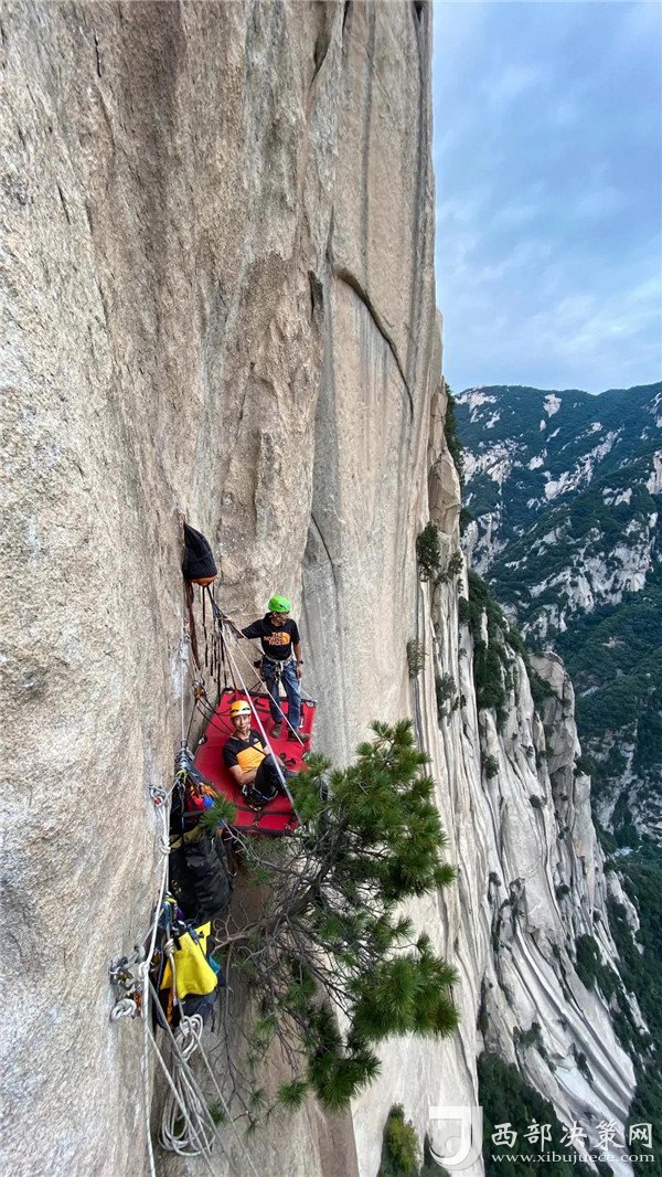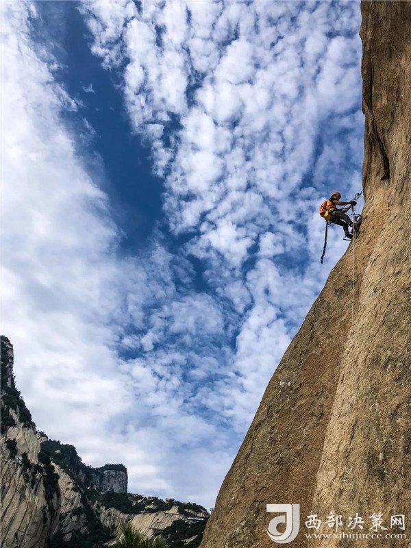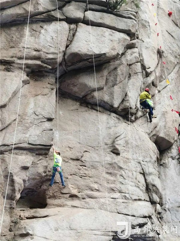 自然巖壁結(jié)組挑戰(zhàn)賽選手成功登頂。挑戰(zhàn)了華山白云峰六百多米的花崗巖大巖壁,并在巖壁上生活了兩天,不僅向大家展示了運(yùn)動(dòng)員的專業(yè)攀巖技術(shù),更展示了超強(qiáng)的野外生存能力。