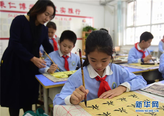 10月20日,滄州市實驗小學(xué)參加“校內(nèi)課后延時服務(wù)”的學(xué)生在老師的指導(dǎo)下練習(xí)書法。