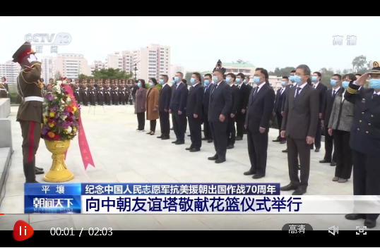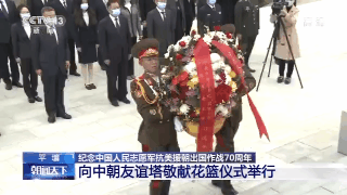 當(dāng)?shù)貢r(shí)間21日,以中共中央總書記、國(guó)家主席、中央軍委主席習(xí)近平名義向朝鮮平壤中朝友誼塔、檜倉(cāng)中國(guó)人民志愿軍烈士陵園敬獻(xiàn)花籃儀式在朝鮮舉行。中國(guó)駐朝鮮大使率全體館員及其他在朝中方人員代表出席。