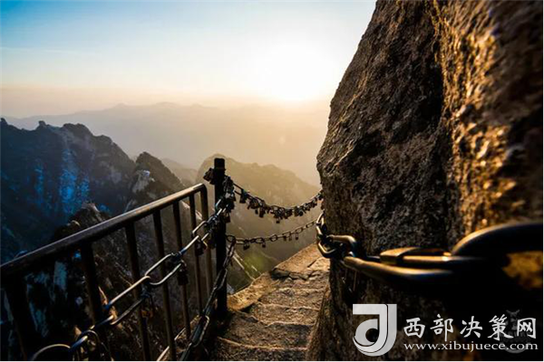 華山的路奇,“自古華山一條路”是一道奇觀,這條路或越澗跨溝,或臨崖盤山,或入崖間深谷,或走峭壁嶺脊,或平坦或曲陡,或?qū)挸ɑ颡M窄,曲折變化,跌宕起伏,把人帶入意境深邃的萬般景象之中。