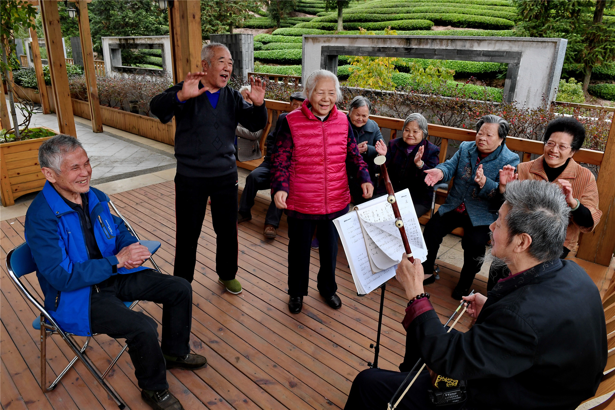 老人在福建省武夷山市社會福利中心唱歌(2018年11月1日攝)。新華社記者 張國俊 攝