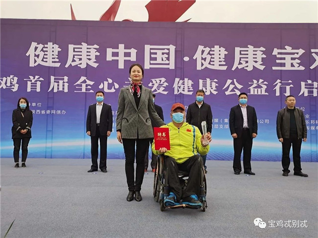 啟動(dòng)儀式上,寶雞籍殘奧會(huì)鐵餅冠軍范良受聘擔(dān)任本次健康公益行形象大使,他曾代表中國(guó)出戰(zhàn)2004雅典殘奧會(huì),2008北京殘奧會(huì),2012年倫敦殘奧會(huì),兩次以?xún)?yōu)異的成績(jī)獲得金牌,并打破世界紀(jì)錄,為中國(guó)人民贏得了榮譽(yù)。其中,2004雅典殘疾人奧運(yùn)會(huì)、2008北京殘奧會(huì)鐵餅金牌得主。退役后帶領(lǐng)寶雞地區(qū)殘疾人創(chuàng)業(yè),一直致力于公益事業(yè)發(fā)展。