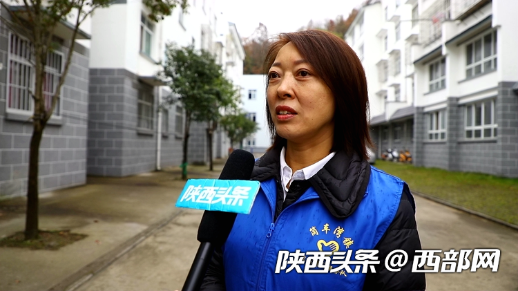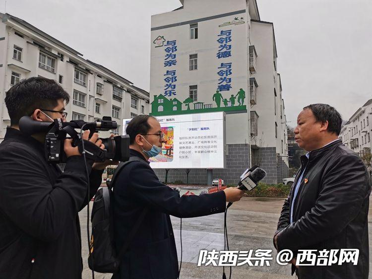 寧陜縣筒車灣社區(qū)干部向媒體介紹鄰里守望相助故事