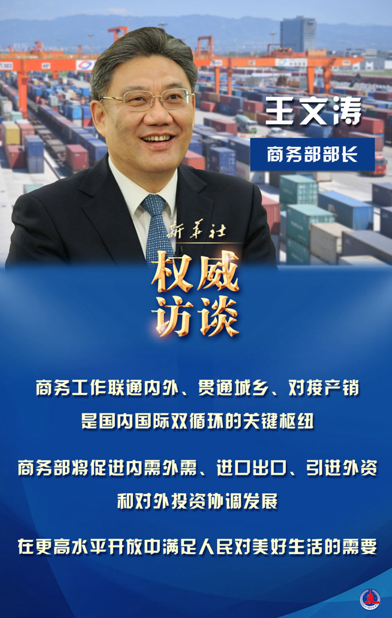“商務部一頭連著國內(nèi)大循環(huán),一頭連著國際大循環(huán),在國內(nèi)大循環(huán)和國際大循環(huán)聯(lián)動中商務部能發(fā)揮重要作用。”王文濤說。