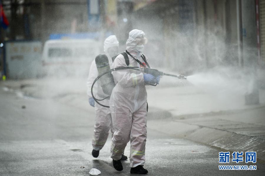 1月15日,在河北省石家莊市藁城區(qū)小果莊村,防疫工作人員在進行消殺。新華社發(fā)(趙杰 攝)