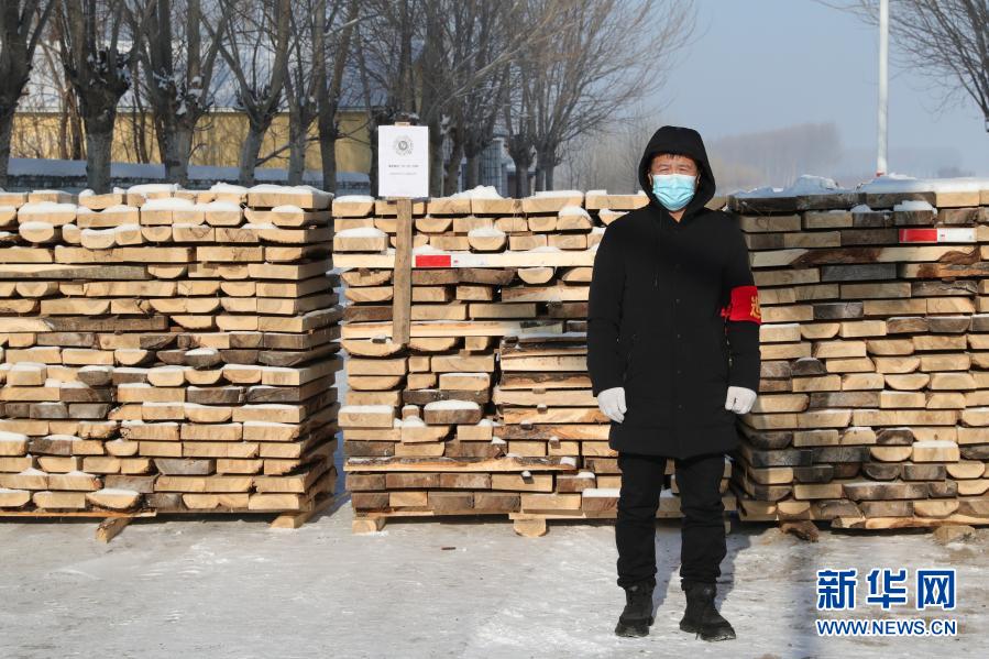 1月15日,在黑龍江省綏化市望奎縣后三鄉(xiāng)廂白七村,巡邏員在村頭值班。新華社發(fā)(張濤 攝)