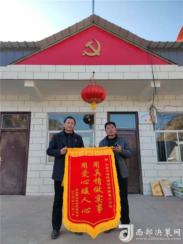 慰問返程時,村民代表為分公司送上錦旗兩面,表達南張家溝村兩委會和村民對分公司包扶工作的認可和感謝。(供稿人:張琪)