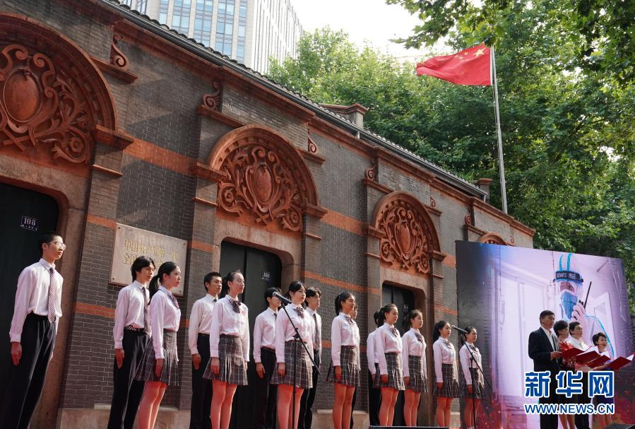 2020年7月1日,“七一”重溫入黨誓詞儀式在中共一大會(huì)址前舉行。這是活動(dòng)現(xiàn)場(chǎng)以詩(shī)朗誦形式講述抗疫一線的黨員故事。新華社記者 劉穎 攝