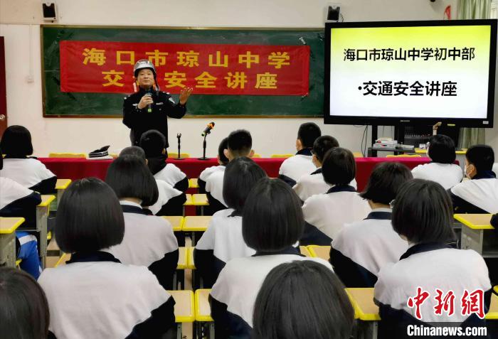 在三亞紅沙魯迅中學,紅沙海岸派出所民警通過梳理近年來轄區(qū)未成年違法犯罪典型案例,為學生們講解當前青少年違法犯罪常見問題,以及如何約束自我、加強自我保護等法律知識。