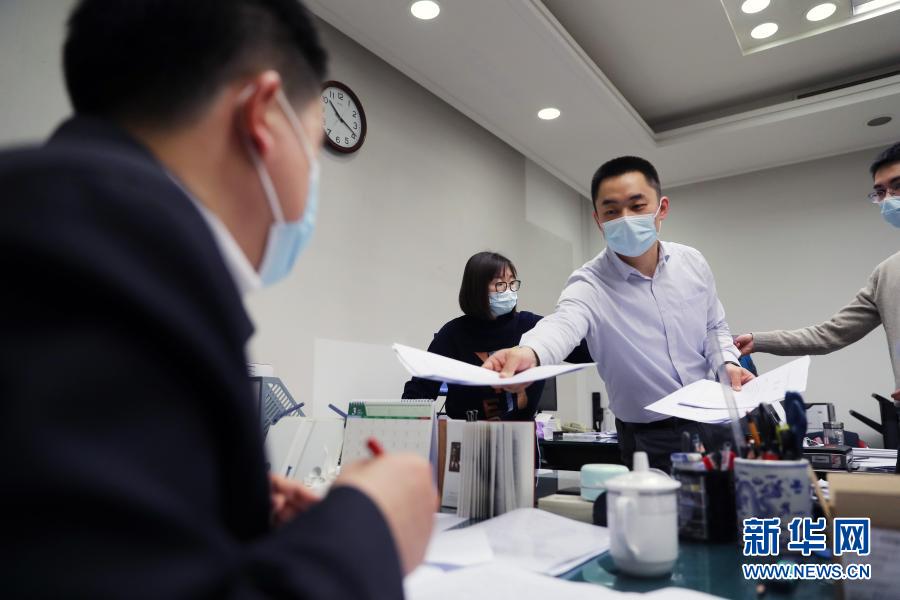 3月5日,2021年全國兩會代表委員意見建議梳理匯總和轉辦回應工作專班的工作人員在忙碌。新華社記者 李木子 攝