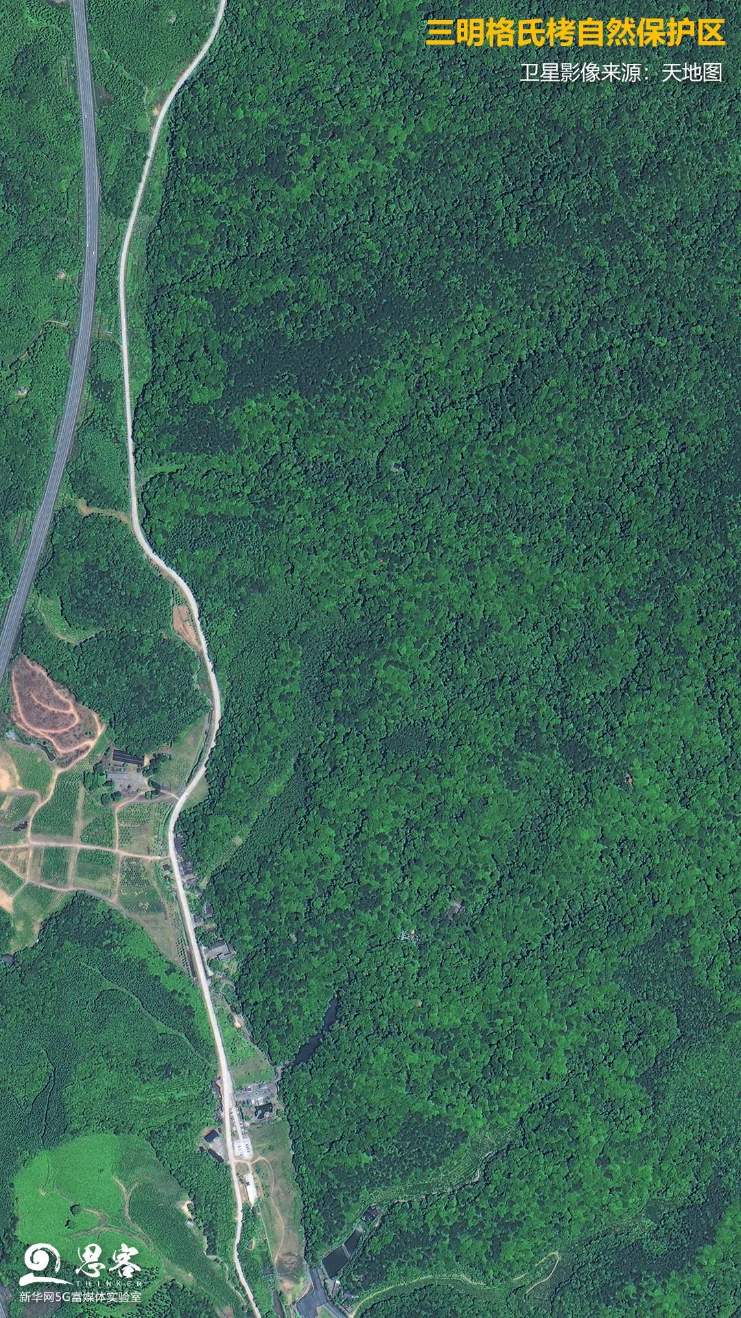 ▲三明格氏栲自然保護(hù)區(qū)。衛(wèi)星影像來源:天地圖