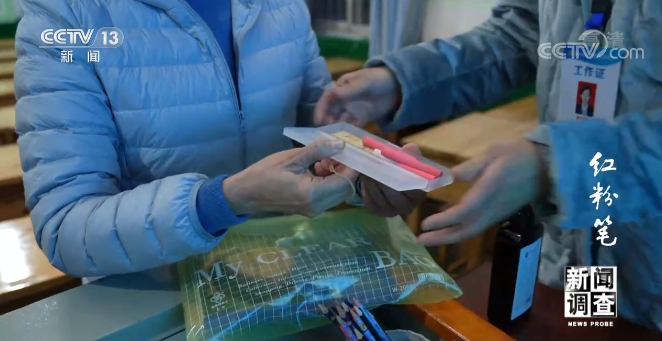 敬一丹再次采訪戚誼老師時(shí),送給她一份只有她倆能懂的特殊禮物:一盒紅粉筆和白粉筆,戚老師頓時(shí)淚奔。