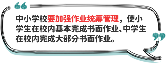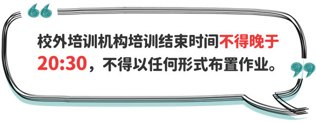 四、防止學(xué)業(yè)過重擠占睡眠時間。中小學(xué)校要提升課堂教學(xué)實效,加強作業(yè)統(tǒng)籌管理,嚴(yán)格按照有關(guān)規(guī)定要求,合理調(diào)控學(xué)生書面作業(yè)總量,指導(dǎo)學(xué)生充分利用自習(xí)課或課后服務(wù)時間,使小學(xué)生在校內(nèi)基本完成書面作業(yè)、中學(xué)生在校內(nèi)完成大部分書面作業(yè),避免學(xué)生回家后作業(yè)時間過長,擠占正常睡眠時間。校外培訓(xùn)機構(gòu)培訓(xùn)結(jié)束時間不得晚于20:30,不得以課前預(yù)習(xí)、課后鞏固、作業(yè)練習(xí)、微信群打卡等任何形式布置作業(yè)。