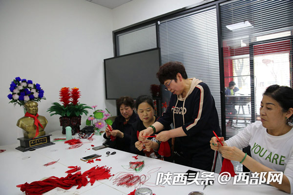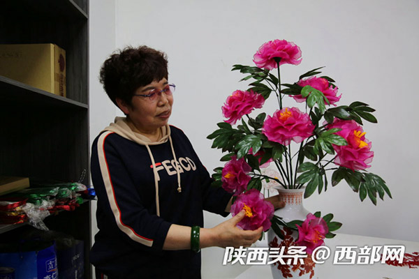 延安市寶塔區(qū)電商直播融合孵化服務(wù)中心,60歲的退休大媽董智玲在教大家做絲網(wǎng)花,她們做著山丹丹花,唱著《山丹丹花開紅艷艷》,到這里來學手工花的制作成了一件快樂的事。