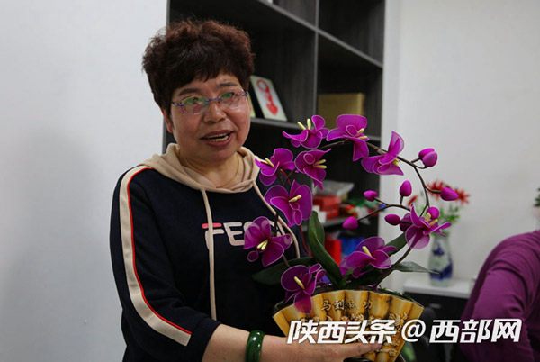 董智玲說:“你看我這盆蝴蝶蘭絲網(wǎng)花是不是很逼真,絲網(wǎng)花質(zhì)感強,猶如鮮花一般,放在家里欣賞及裝飾效果都很好,它不易褪色,歷久如新,清潔起來也相當方便。”
