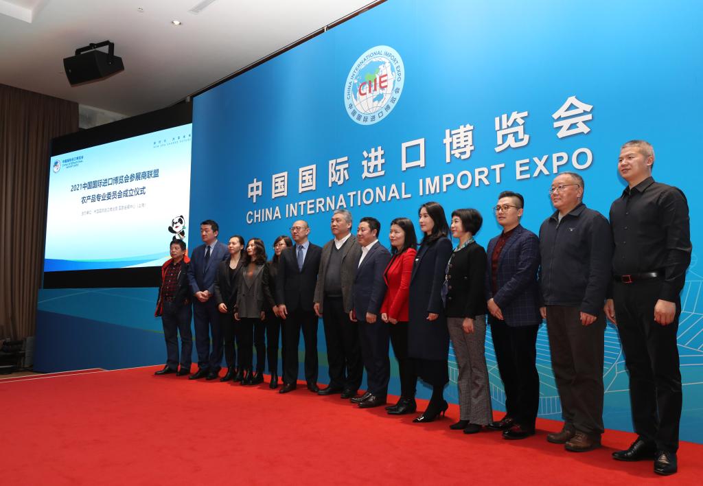 1月20日,進博會參展商聯(lián)盟農(nóng)產(chǎn)品專業(yè)委員會成員企業(yè)代表與嘉賓在專委會成立儀式上合影。新華社記者方喆 攝