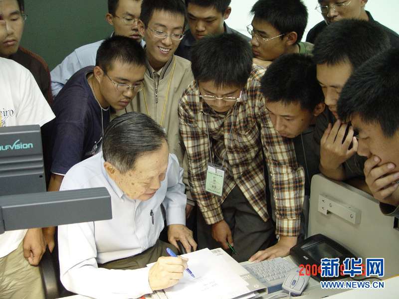 楊振寧先生與清華大學(xué)本科生。(新華社發(fā))
