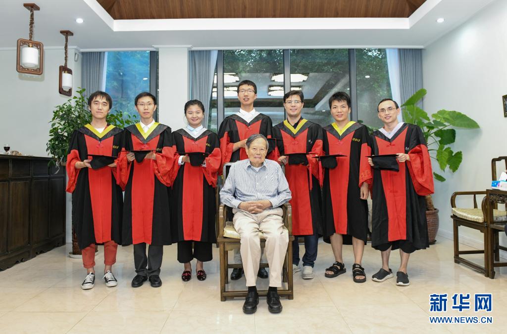 楊振寧先生與博士生在清華大學(xué)合影。(新華社發(fā))