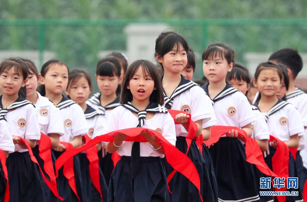 5月31日,南寧市濱湖路小學(xué)的學(xué)生參加入隊(duì)儀式。新華社記者 曹祎銘 攝