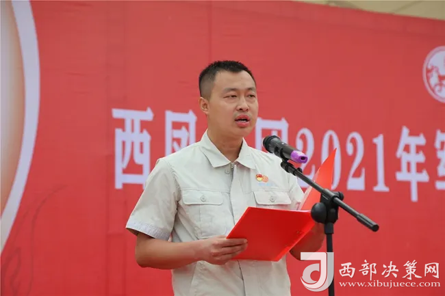 西鳳集團公司工會主席、勞動競賽委員會主任陳軍紅宣讀《關(guān)于對2021年軍訓(xùn)優(yōu)秀隊員及優(yōu)秀教官進行表彰獎勵的決定》及《關(guān)于對第五屆基酒生產(chǎn)系統(tǒng)技能大賽獲獎集體和個人進行表彰獎勵的決定》