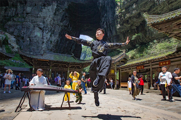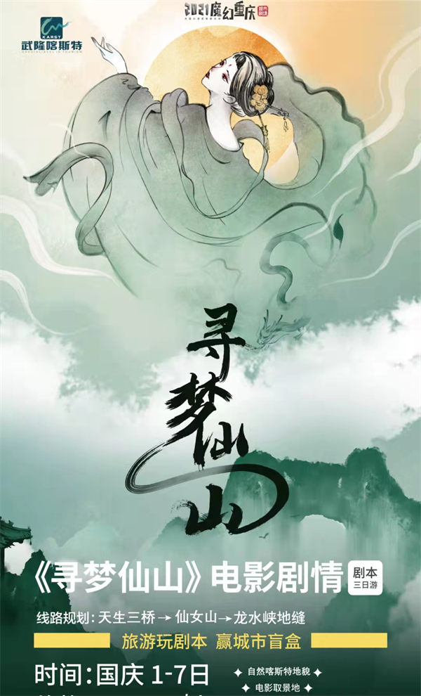作為國內(nèi)熱門的影視取景地,武隆憑借獨特的自然風(fēng)光,吸引了包括《滿城盡帶黃金甲》、《變形金剛4》、《爸爸去哪兒2》、《三生三世十里桃花》、《我們十七歲》等眾多影視及綜藝節(jié)目到此拍攝取景,現(xiàn)已成為重慶旅游的文化名片。鬼斧神工的自然景觀,加上濃郁的影視文化氛圍,讓《尋夢仙山》沉浸式劇本殺更新奇和神秘。國慶出發(fā)去武隆玩“劇本殺”,讓我們拭目以待吧!