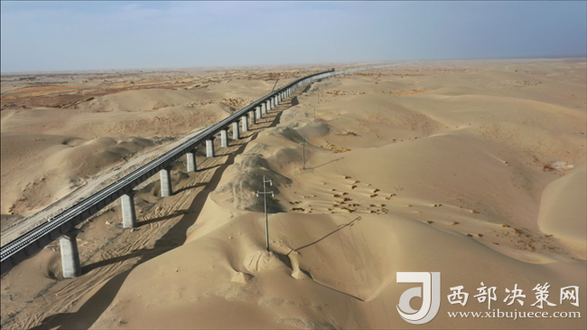 西部決策網(wǎng)訊 9月27日上午,在新建和田至若羌鐵路新疆民豐縣境內(nèi)段的施工現(xiàn)場,隨著直鋪機將最后60米鋼軌推進落地,由中鐵第一勘察設(shè)計院集團有限公司總體勘察設(shè)計的和若鐵路宣告鋪軌完成,標志著世界上首條環(huán)沙漠鐵路正式閉環(huán)。