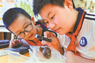 濱江東路小學學生在海珠濕地上勞動教育實驗課《常見的螺》。 廣州日報全媒體記者駱昌威攝