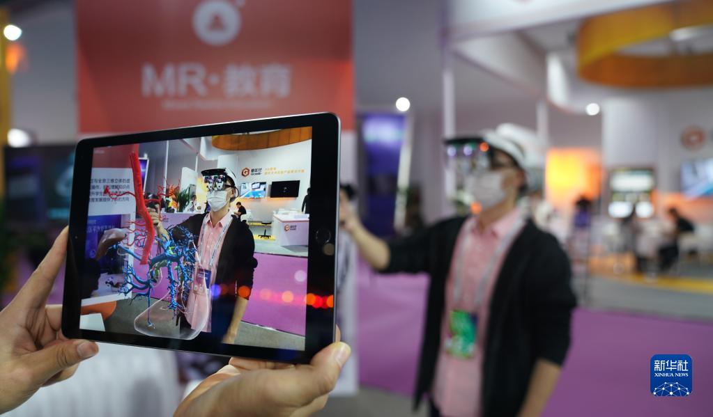 2020年10月19日,2020世界VR產(chǎn)業(yè)大會(huì)云峰會(huì)在江西省南昌市開幕,這是觀眾在大會(huì)VR/AR產(chǎn)品和應(yīng)用展覽會(huì)上體驗(yàn)“MR交互系統(tǒng)”在醫(yī)務(wù)教學(xué)上的應(yīng)用。新華社記者 胡晨歡 攝