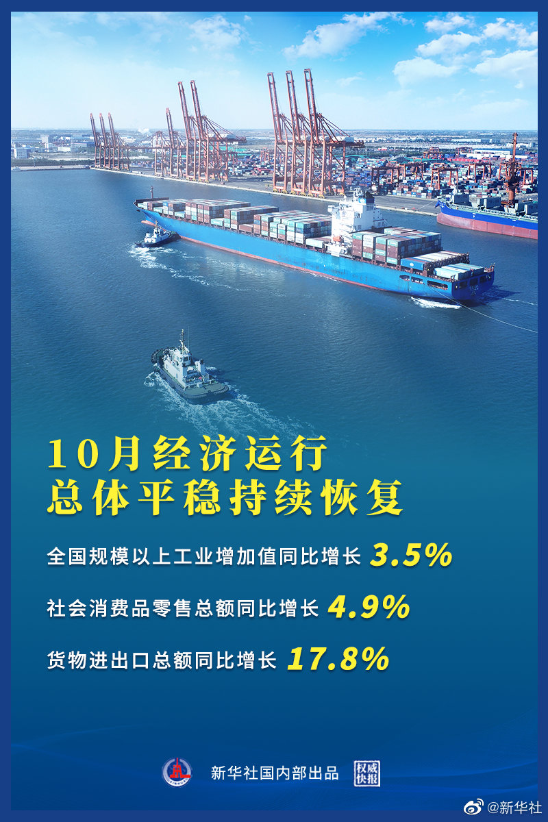 “總的來看,10月份經(jīng)濟運行總體平穩(wěn)持續(xù)恢復,發(fā)展韌性繼續(xù)顯現(xiàn)。但也要看到,當前國際環(huán)境依然復雜嚴峻,不穩(wěn)定不確定因素仍然較多,國內(nèi)發(fā)展中階段性結(jié)構(gòu)性矛盾猶存,保持經(jīng)濟穩(wěn)定恢復仍需加力。”國家統(tǒng)計局新聞發(fā)言人、國民經(jīng)濟綜合統(tǒng)計司司長付凌暉說。