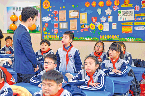 12月3日,在湖州市月河小學(xué)教育集團(tuán)湖東校區(qū),湖東街道邀請律師志愿者講解憲法知識,與學(xué)生互動(dòng)。在國家憲法日來臨之際,浙江省湖州市吳興區(qū)組織開展憲法主題教育宣傳活動(dòng),走進(jìn)社區(qū)、學(xué)校宣講憲法知識。新華社記者黃宗治攝