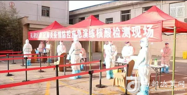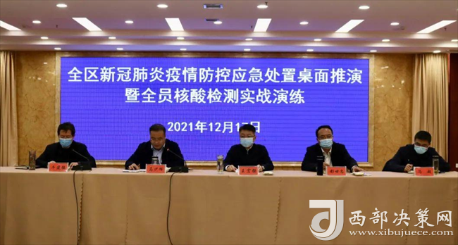 西部決策網(wǎng)訊(韓宗憲 通訊員 陳珊珊)12月17日,寶雞市鳳翔區(qū)新冠肺炎疫情防控應(yīng)急處置桌面推演暨全員核酸檢測實(shí)戰(zhàn)演練在白玉蘭酒店舉行。鳳翔區(qū)疫情防控專班、區(qū)疫情防控相關(guān)部門、各鎮(zhèn)、區(qū)流行病學(xué)調(diào)查組各成員單位等參加演練。區(qū)委區(qū)政府主要領(lǐng)導(dǎo)現(xiàn)場觀摩了本次實(shí)戰(zhàn)演練。